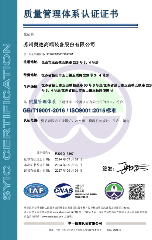 奧德創立于2004年深圳(深圳市奧德機械有限公司),2007年在蘇州成立總部(蘇州奧德高端裝備股份有限公司),一直專注于工業溫度控制領域,是集研發、生產銷售為一體的溫度控制設備制造國家高新技術、專精特新企業。